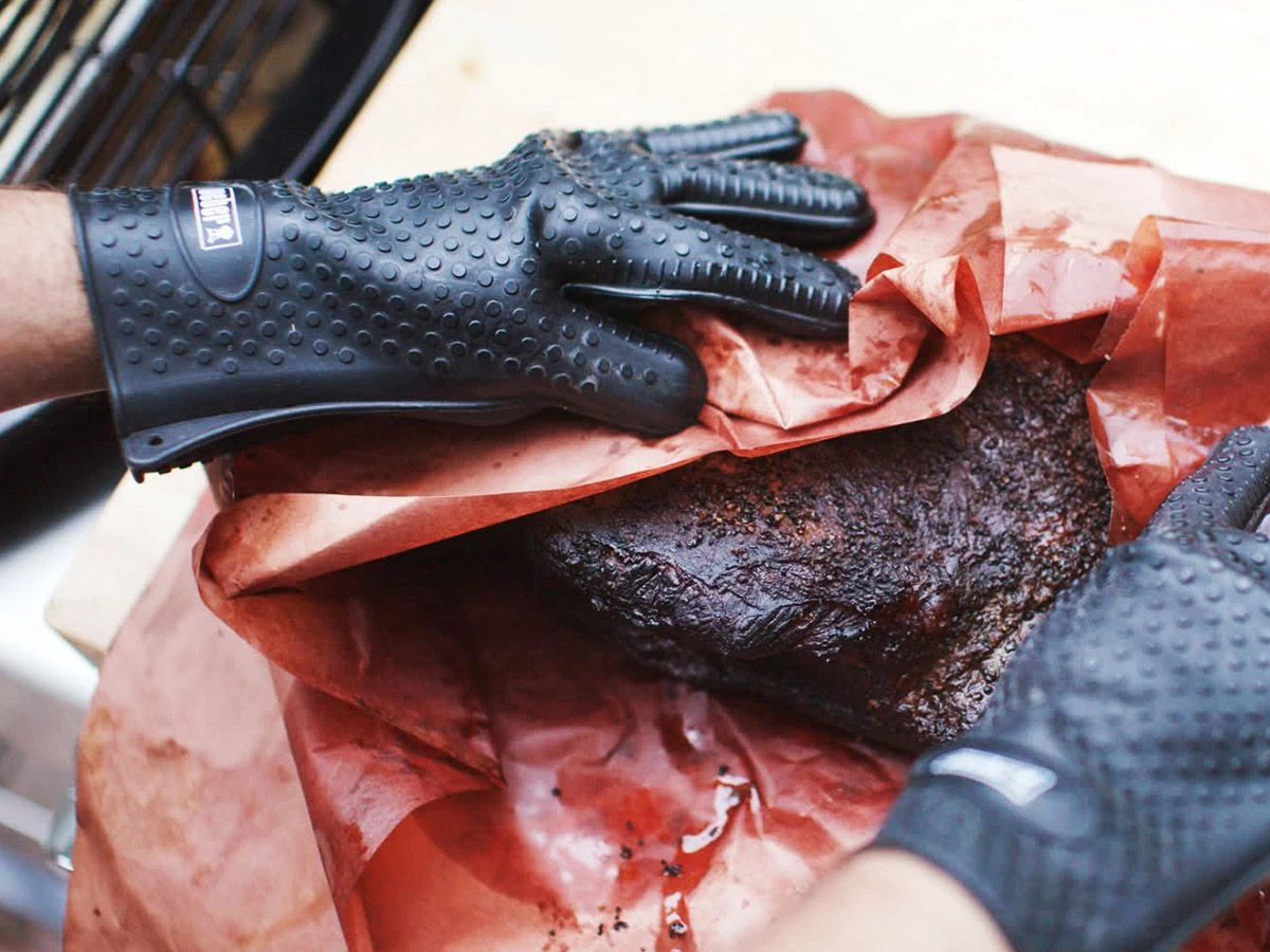 Om grote stukken vlees om te draaien of te verleggen is een barbecuetang niet altijd de handigste keuze. Zware stukken vlees kun je makkelijker draaien met deze hittebestendige handschoenen van Weber. Dankzij de duurzame siliconen kun je gemakkelijk grote stukken vlees van hete oppervlakken oppakken.